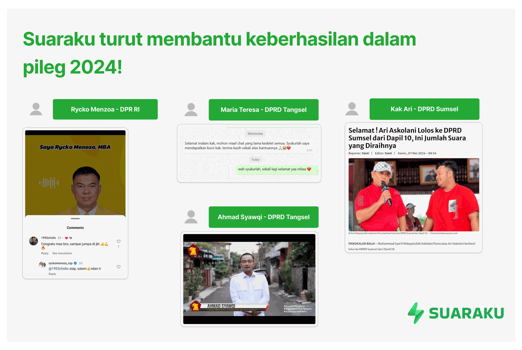 With Suaraku, volunteers can work more effectively. The campaign team can manage and analyze voter data through an admin web portal. Meanwhile, potential voters can utilize a dedicated website to obtain complete information about candidates and campaign programs. By using Suaraku, the election process will become more efficient and organized.